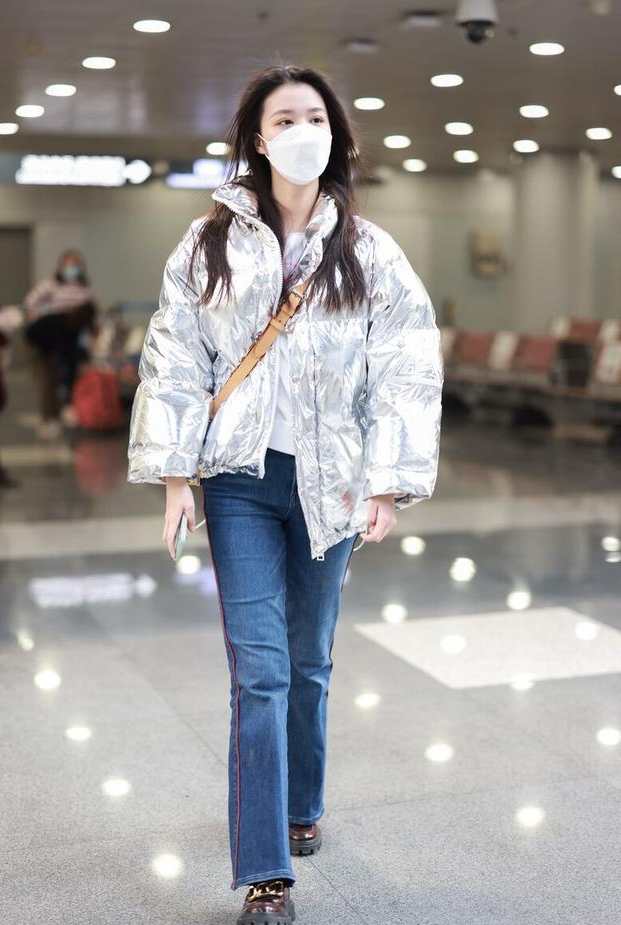 推荐银色好看又不挑肤色,再加上牛仔裤的助攻,充满活力与朝气。配一双高跟短靴,瞬间拔高5cm。天气寒凉,别忘了搭配厚袜或者打底。