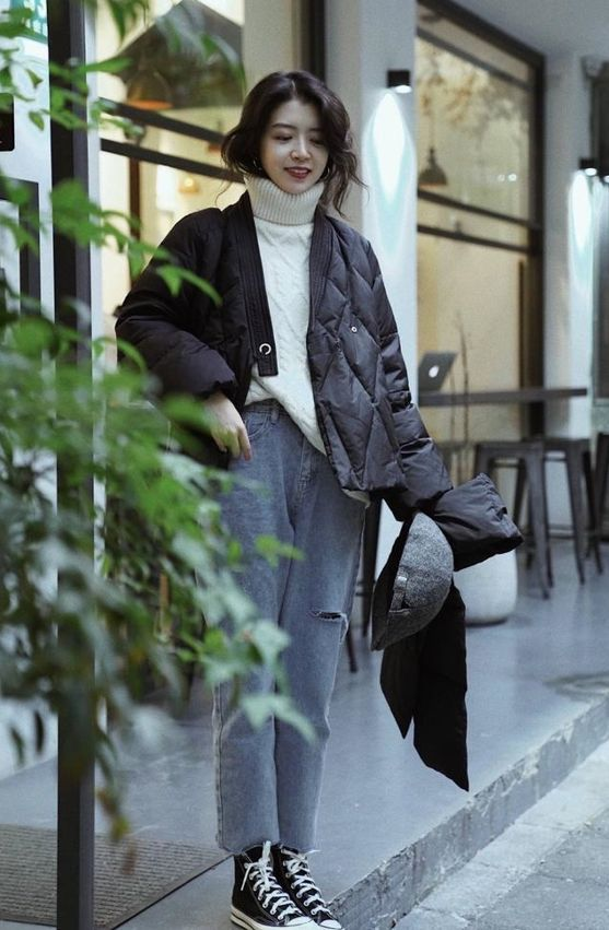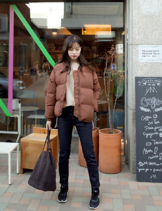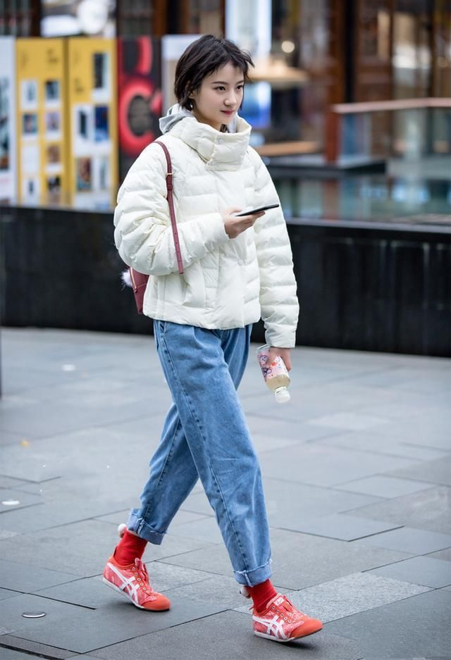 选择修饰的直筒裤款式,搭配短款羽绒服,既帅气又可以遮肉,造型简洁,很少有女孩子能拒绝。裤长九分,再配一双短靴,更添几分英气。