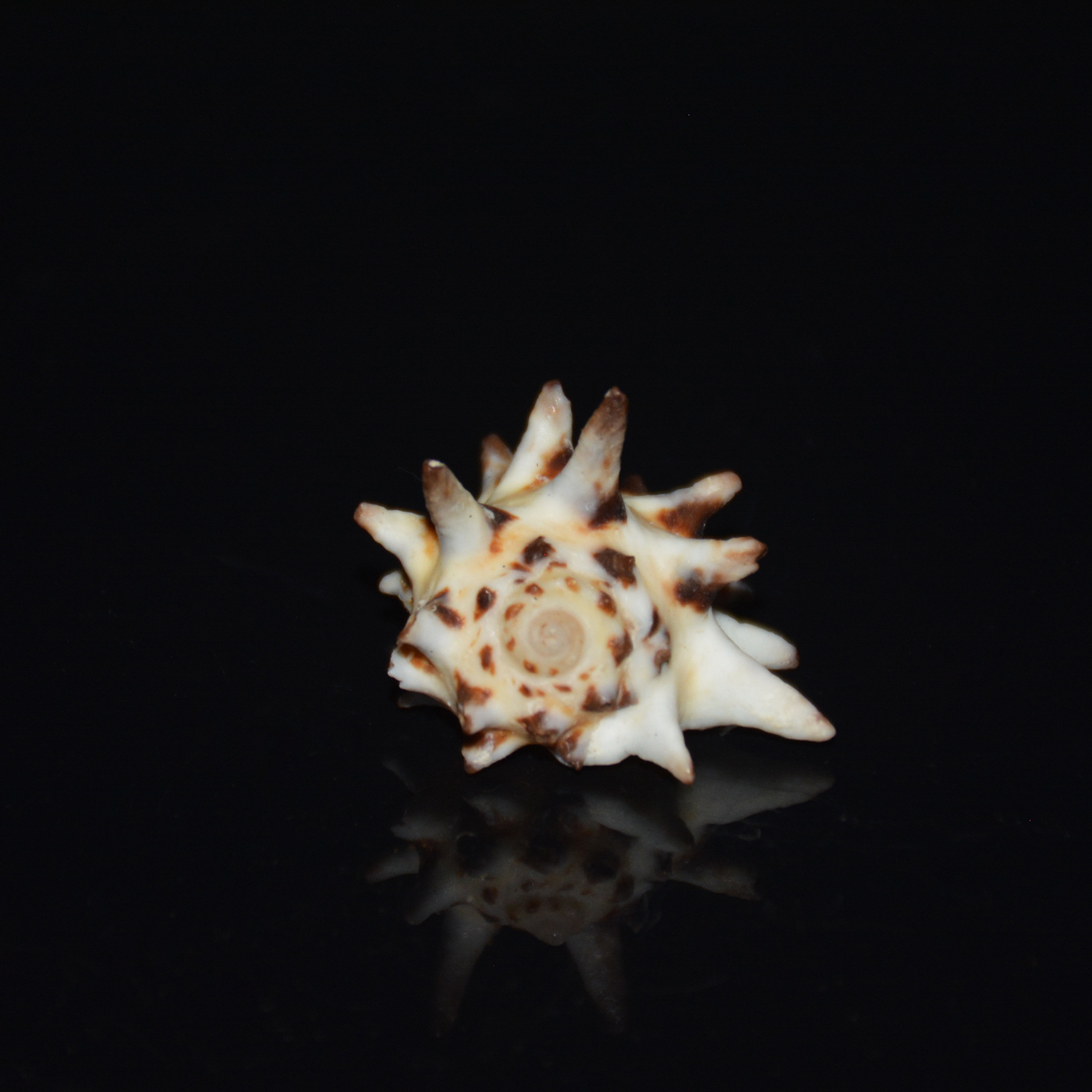 深圳市海之洋贝壳博物馆内的黄斑核果螺均为其贝壳标本,其肉体已腐化处理,壳较小,壳口外有黄白色骨环,色彩鲜艳,极具特色~