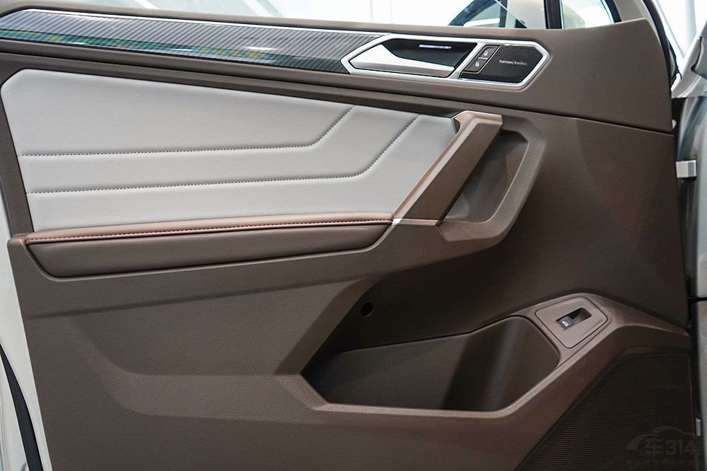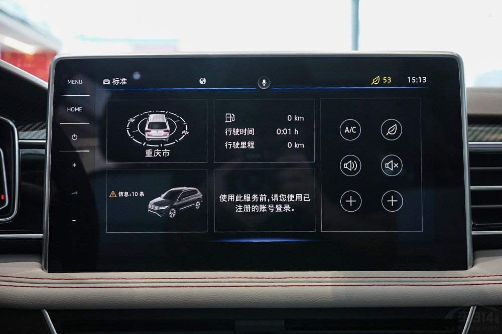 在内饰方面,途观L的中控区域很具层次感,贯穿式空调出风口十分简洁,外侧有着镀铬饰条的点缀。