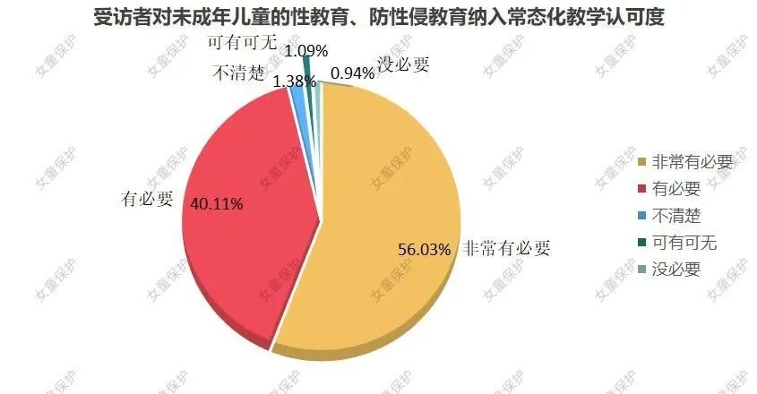 其实,如今大众对防性侵教育的重视程度已有所深化,这是一个可喜的进步。在2021年“女童保护”进行的线上问卷调查中,已有近九成受访者支持防性侵教育纳入常态化教学。