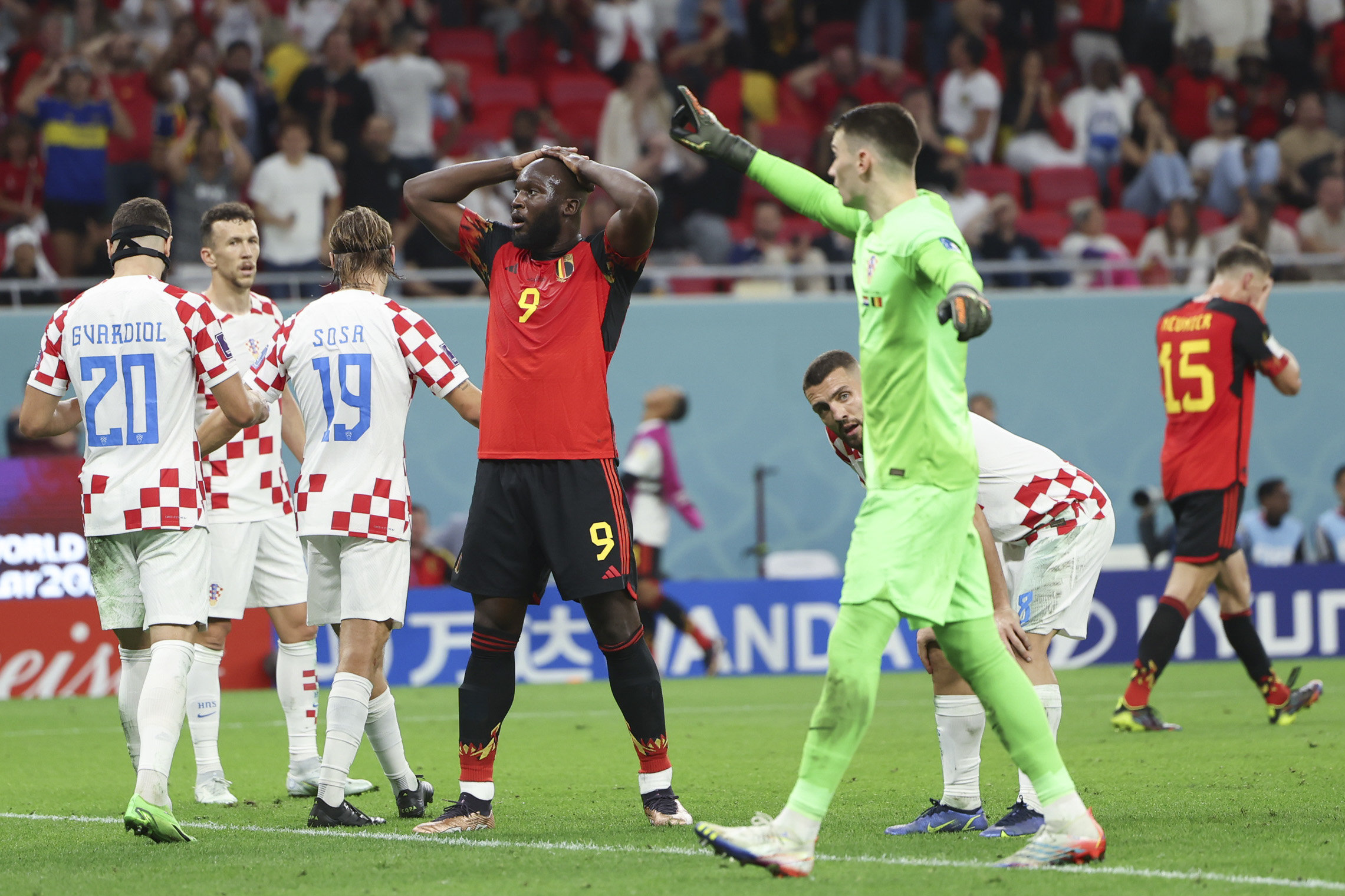 当日,在卡塔尔赖扬艾哈迈德·本·阿里体育场进行的2022卡塔尔世界杯足球赛F组比赛中,克罗地亚队对阵比利时队。