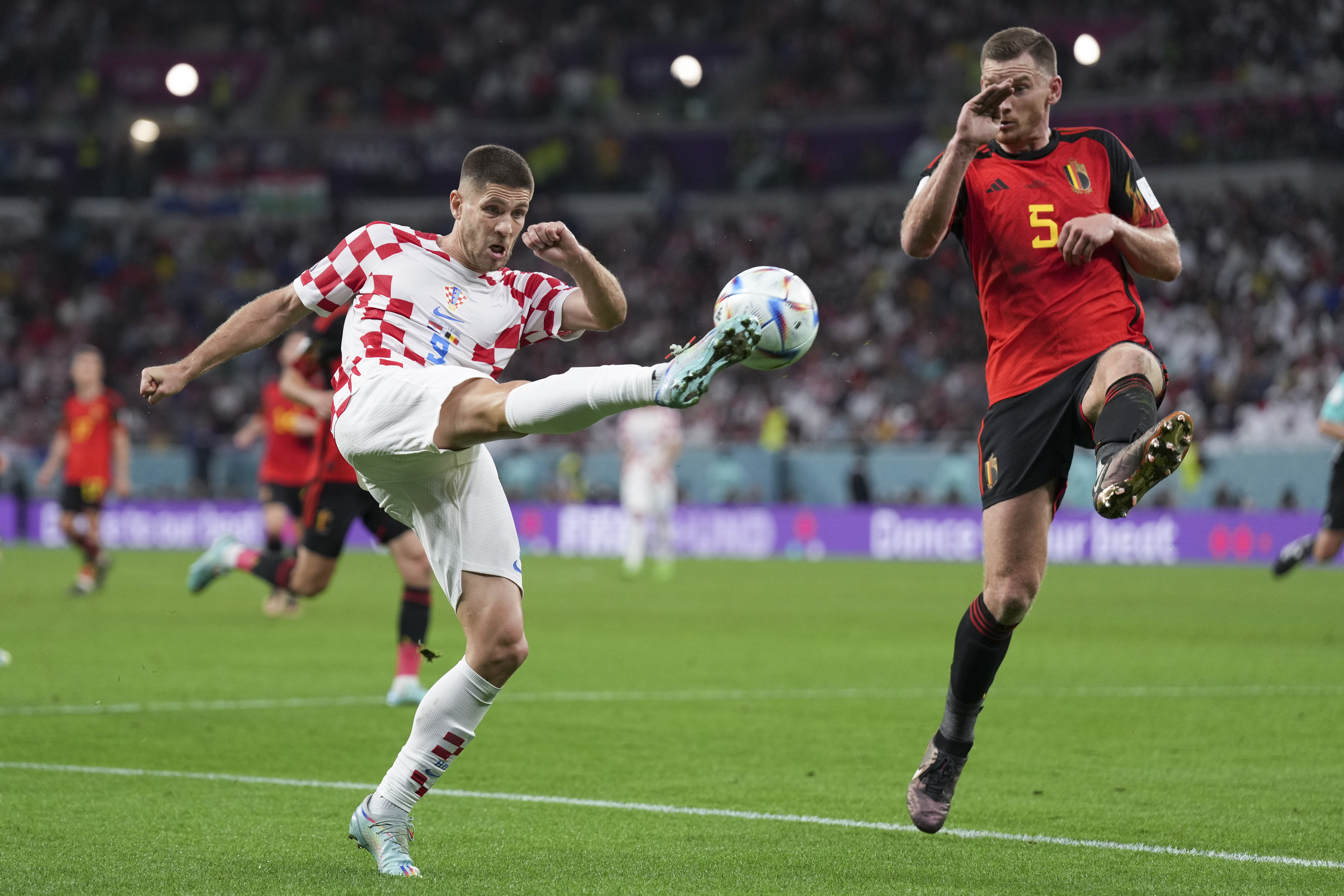 当日,在卡塔尔赖扬艾哈迈德·本·阿里体育场进行的2022卡塔尔世界杯足球赛F组比赛中,克罗地亚队对阵比利时队。
