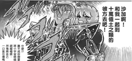 一辉在承受五感被剥夺的时候也在思考,怎么干掉沙加,判断了一下,只有通过具,没圣衣了不要紧,就用具的高级形式–心外之物–讲人话就是用身体自爆。那么一辉要做的就是积蓄小宇宙,小宇宙不凌驾沙加招数施展不了。所以在快被沙加弄废时,一辉的小宇宙积蓄好了,就自爆了。但是这个自爆的招数和亢龙霸不一样,不是现成的招数,用起来不那么熟练,所以不像天龙架山羊那样直接飞走了。是先一辉小宇宙盖过沙加,把天舞这个投心技的心给弄没了,然后在自爆技发挥前,天舞的投还在,投就发挥了作用把两人带去了异空间,一辉的自爆没爆成。所以理论上一辉只要小宇宙压制,不要出招,也许也是这个结果。