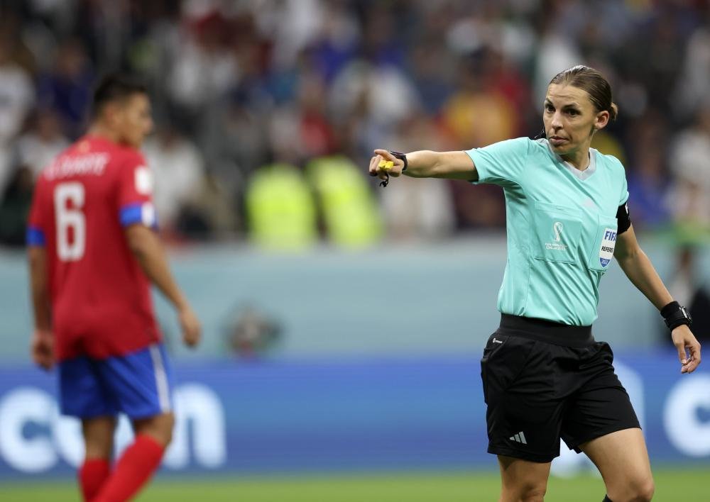 12月1日,本场比赛主裁判斯蒂芬妮·弗拉帕尔(右)在比赛中。 新华社记者 韩岩 摄