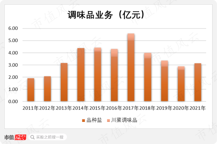 不过从2015年开始单独披露川菜调味品收入来看,这项业务显然也是不成气候的。