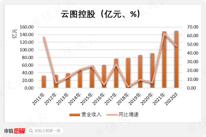 2011年上市至今,云图控股的营业收入整体是增长的。