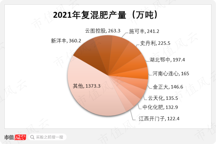 根据磷复肥工业协会统计,2021年,云图控股复合肥总产量263.3万吨,次于新洋丰(000902,SZ),位列行业第二。