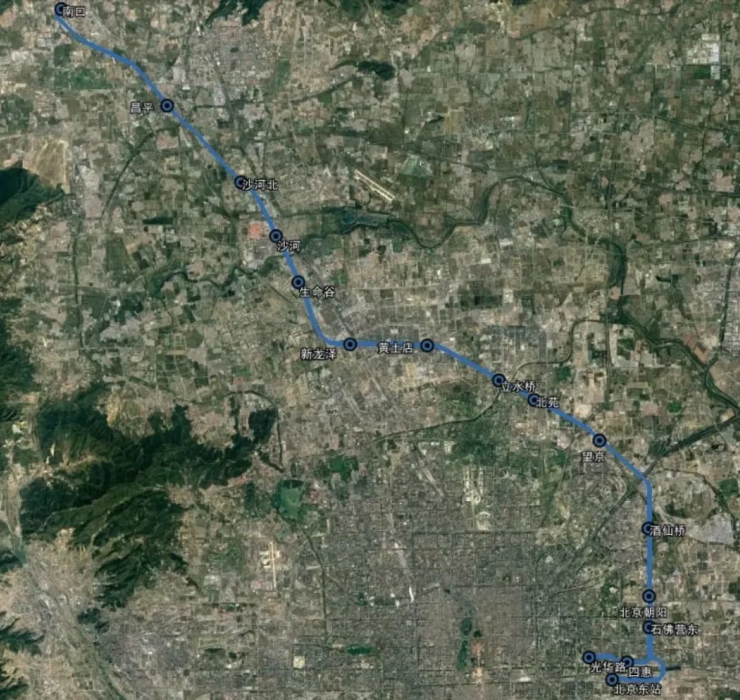 这条线路是从西到东,联系海淀山后(永丰-永丰东-航天城),昌平(生命科学园西-史各庄-朱辛庄-白各庄-宏福-立汤路-海鶄落-未来科学城南区),顺义(天北路-裕安路-后沙峪)。