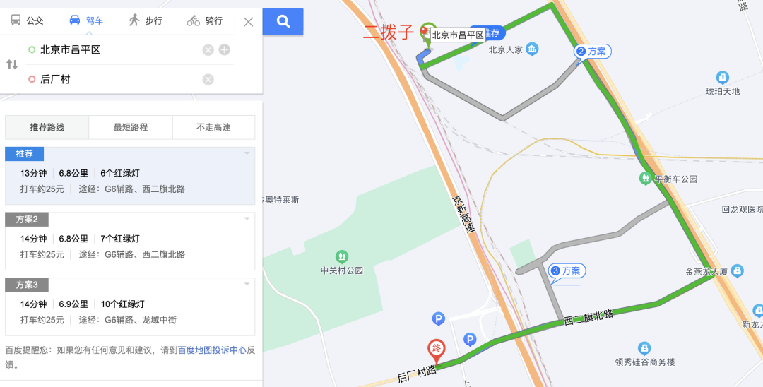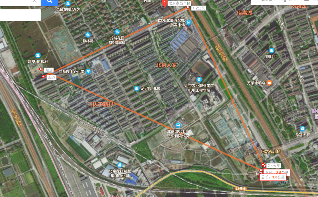 从地图上,二拨子距离海淀后厂村,航天城,永丰等区域非常近,但因为京新高速,京张铁路阻隔,从二拨子去海淀非常绕。