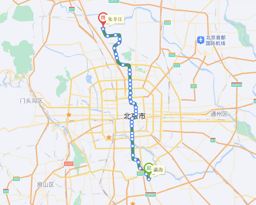 朱辛庄是8号线的北边始发站,经过市中心,往南直通大兴瀛海,连接北京南北城。