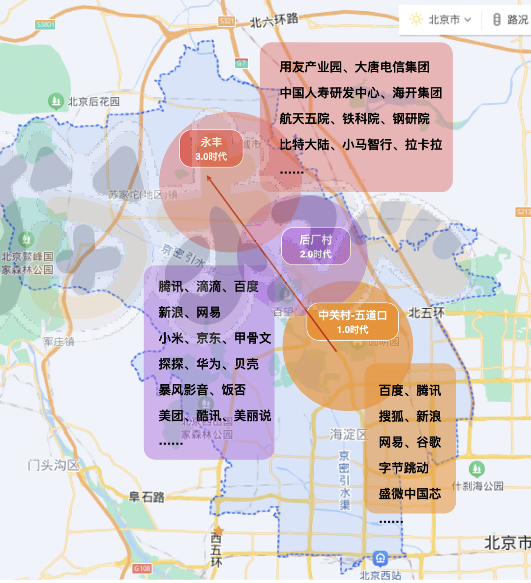 海淀产业发展脉络是从中关村-五道口-上地西二旗,一路向北,不断扩充产业高地。