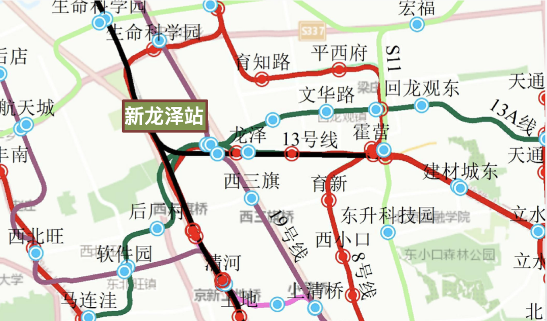 新龙泽站将有四条地铁线通行,13号线拆分A段和B段、19号二期(北延)、区域快线东北环线。