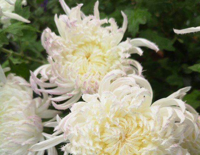 琼岛三友,花色洁白,花瓣奇特又有香味,历来被菊花爱好者和培育者视为不可多得的菊花珍品。