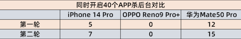 在当下的手机市场来看,苹果和安卓的运行内存属于两个极端,iPhone14 Pro的运存为6GB,安卓这边则普遍8GB起步,例如华为Mate50 Pro;而OPPO Reno9 Pro+则直接将运存提升至16GB,那么它们三者的后台表现到底如何?