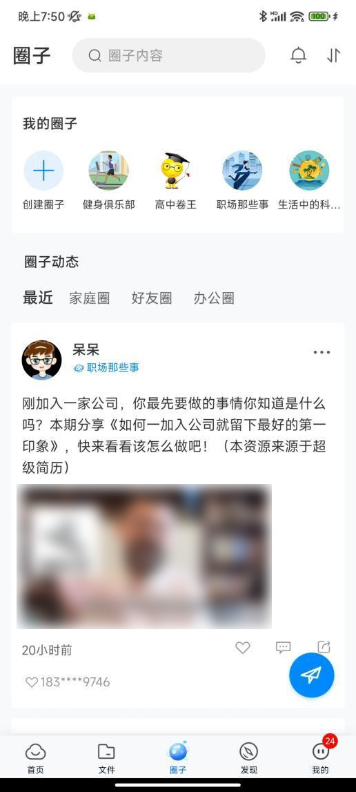相当于云盘中的“朋友圈”,在圈子中,云盘用户可以方便地分享自己的动态,把自己生活中的美好分享和传递给其他人。动态的内容形式很丰富,包括文字、图片、视频、文档等,这些内容可以被其他人查看、转存、评论或分享,强化了社交互动属性。圈子功能应该是新上线的功能,目前看已有不少用户参与,社交氛围初显浓郁。