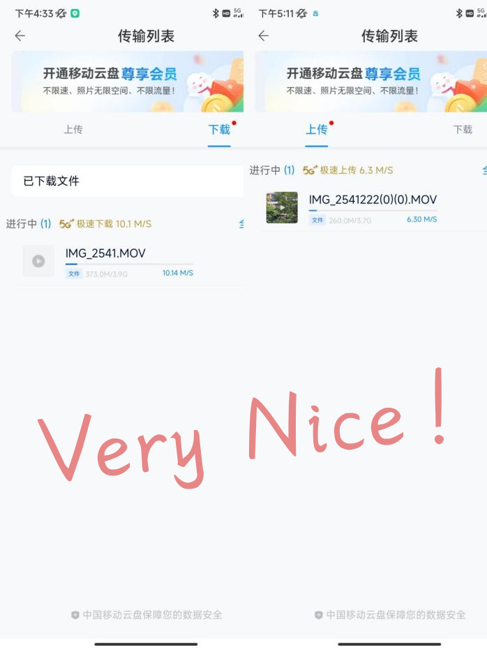 评测这一点时,小雷不得不感叹,国资运营商云盘的气势真是出来了,毕竟在网络带宽上拥有先天优势,中国移动云盘确实有上传、下载不限速的底气。