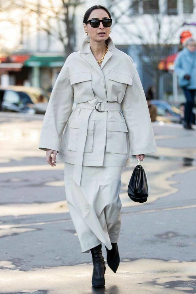巴黎时装周期间,在街上捕捉到模特兼博主,维多利亚·芭芭拉 (Victoria Barbara)。不仅是上装和下装,配饰也全部采用白色,看起来很犀利。