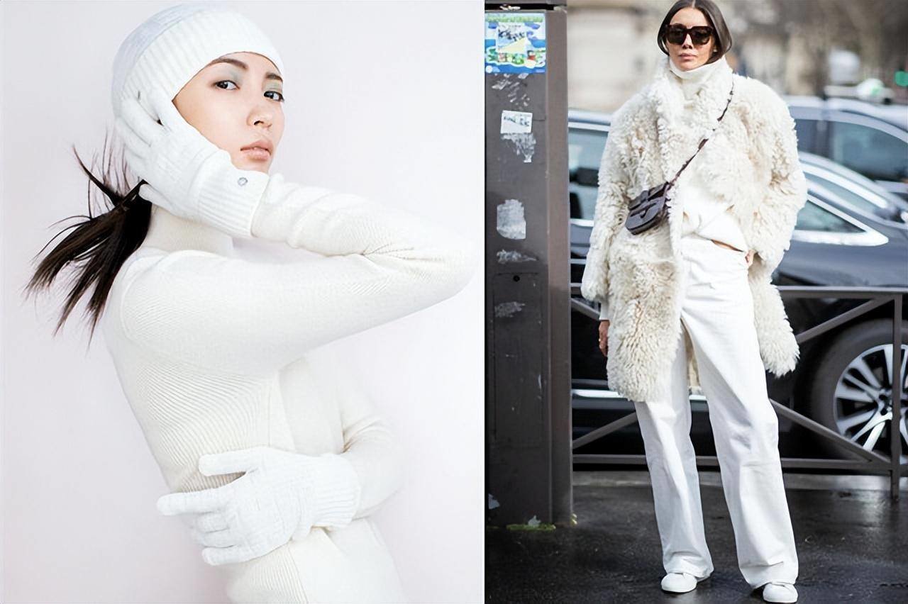 时尚达人在秋冬的全白色穿搭