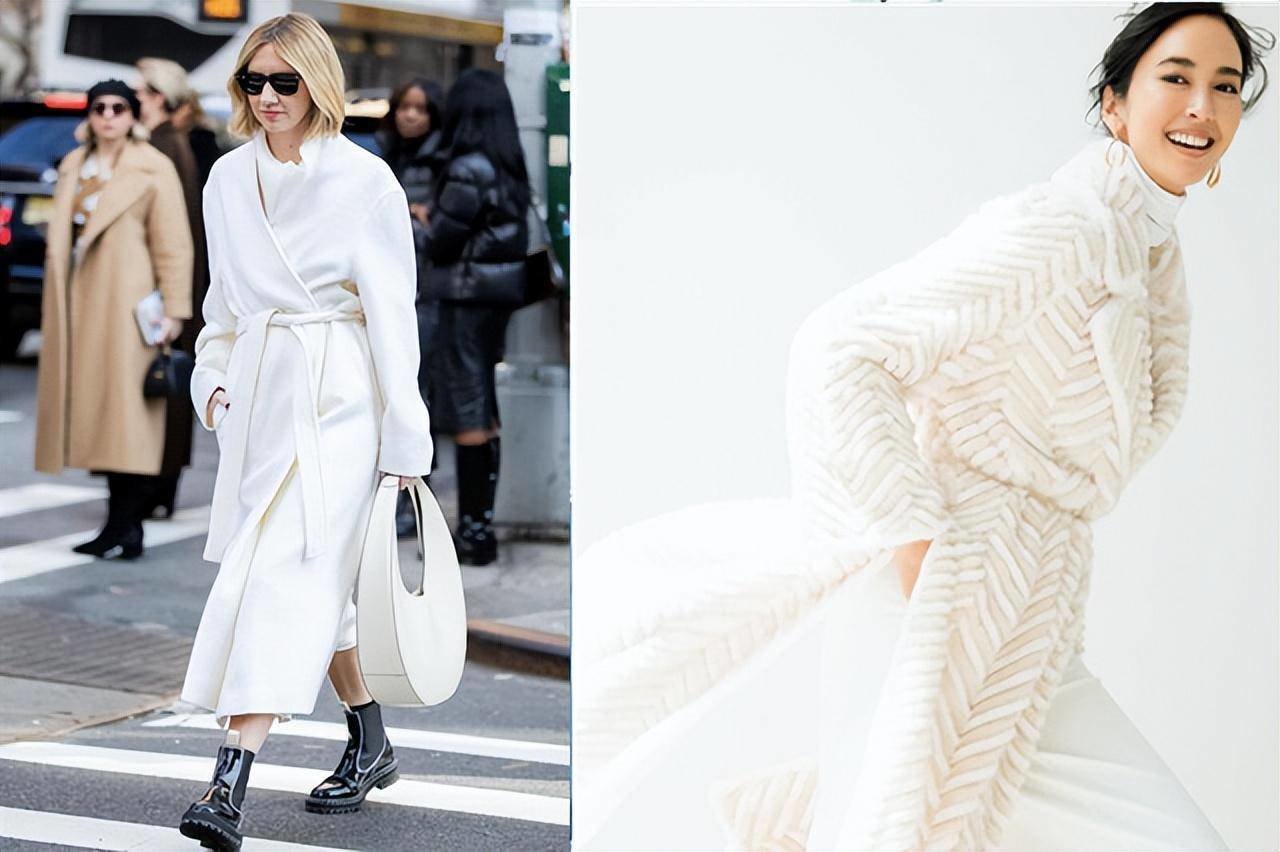 路边的树木变红或满地的落叶,“白色”地穿在秋冬的街景中,会显得格外好看。