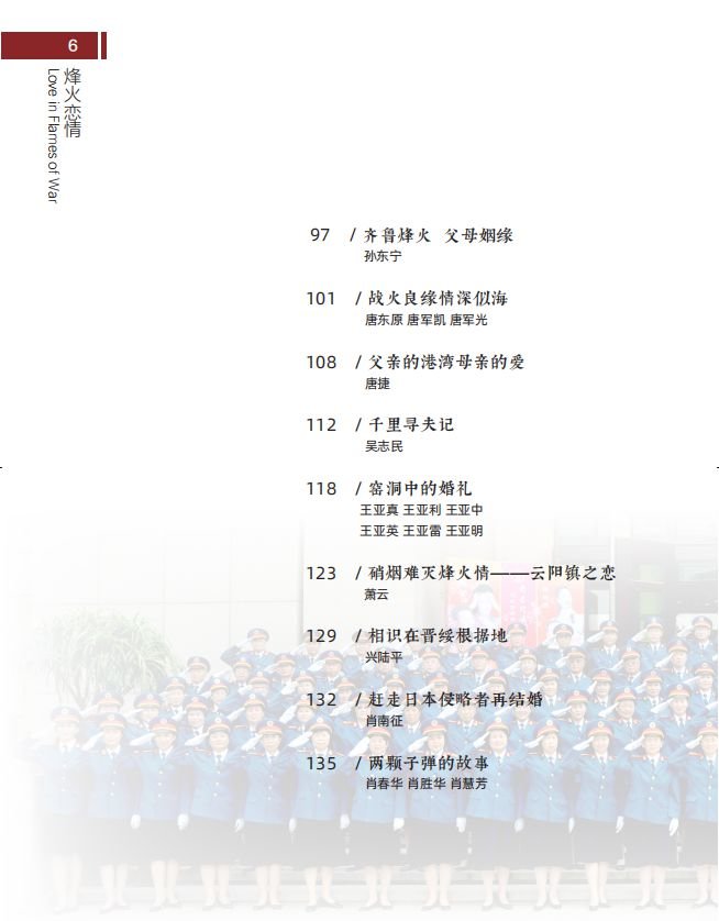 《烽火恋情》一书,由中国民族博览杂志社红船编辑部、北京开国将军后代合唱团《烽火恋情》专刊编辑部共同出品。本书18万字左右,共收录了三十多位开国将军子女撰写的文章,生动详细地描绘了父辈在战争年代的婚姻故事,讲述了那一代人的不平凡的经历。红船编辑部于每周三、每周六连载《烽火恋情》。