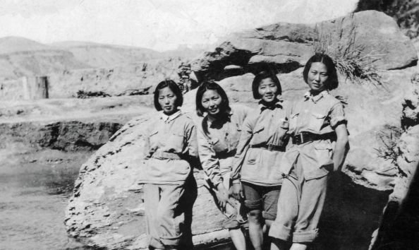 在延安风华正茂的杜家姐妹 左起杜凌远、杜启远 ( 杜堃 )、杜翠远与林蓝