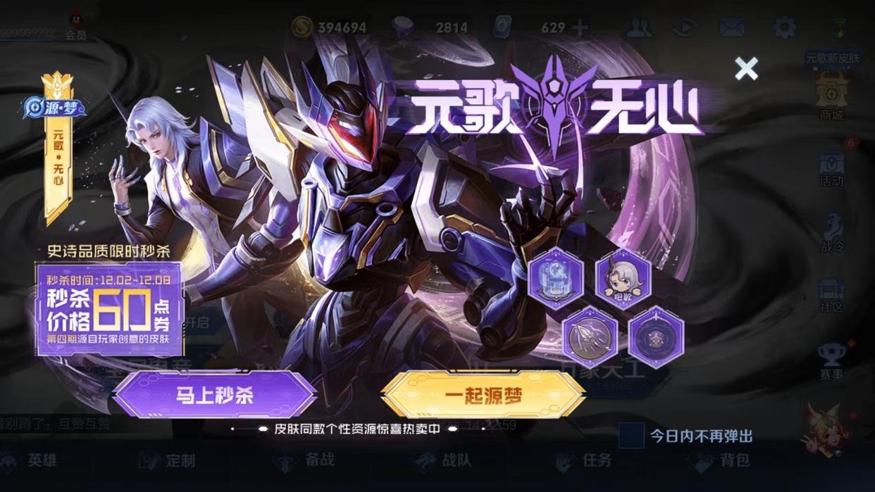 12月2日,备受玩家期待的“源梦”系列新皮肤无心正式登陆《王者荣耀》商城进行开售,这款皮肤的定位如往常一样为史诗,而售价也很符合其定位,是一款原价888点券的皮肤。