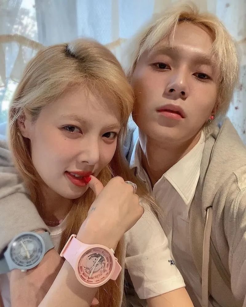 韩国女歌手金泫雅自从于 2018 年和金晓钟(Dawn)公开认爱后,经常在 IG 上分享两人的恋爱日常,两人的甜蜜互动深受大批粉丝喜爱,极度匹配的妆容与着装风格也时常成为话题焦点。