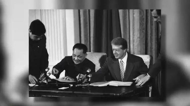 △邓小平与卡特签署《中美建交公报》