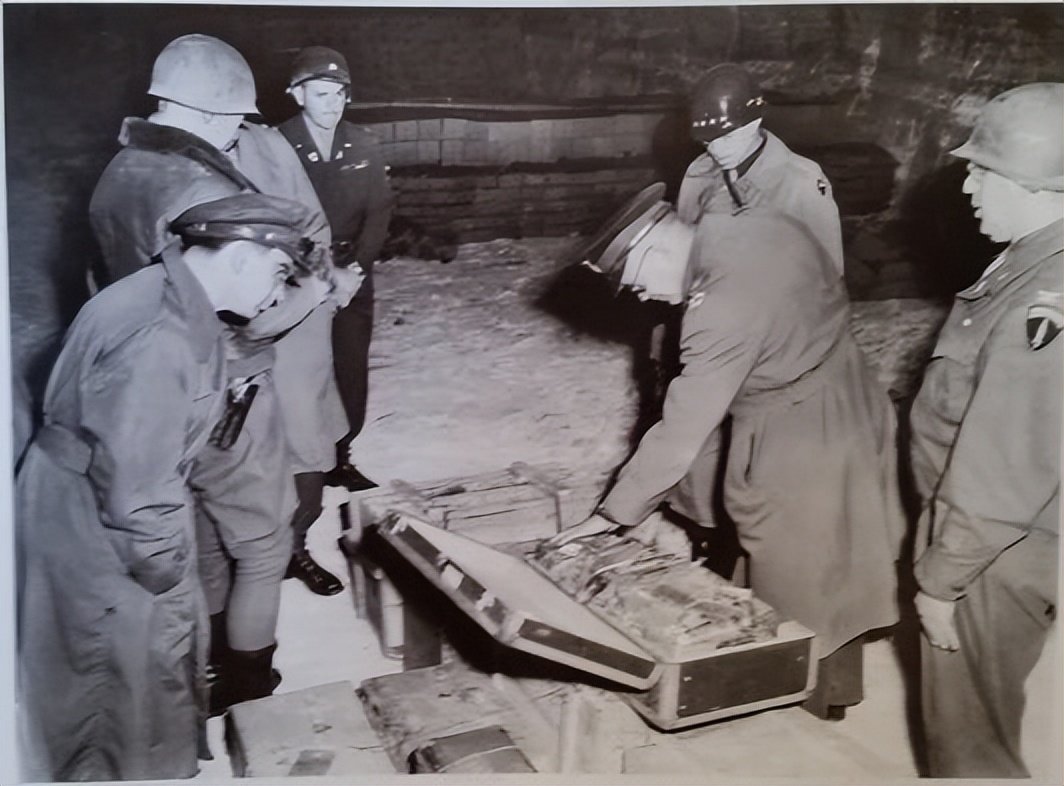 图为1945年5月,艾森豪威尔视察缴获的黄金。