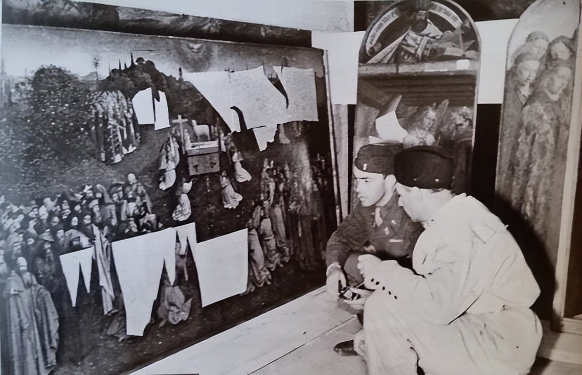 图为盟军缴获了被纳粹掠夺的米开朗基罗《圣母子像》。