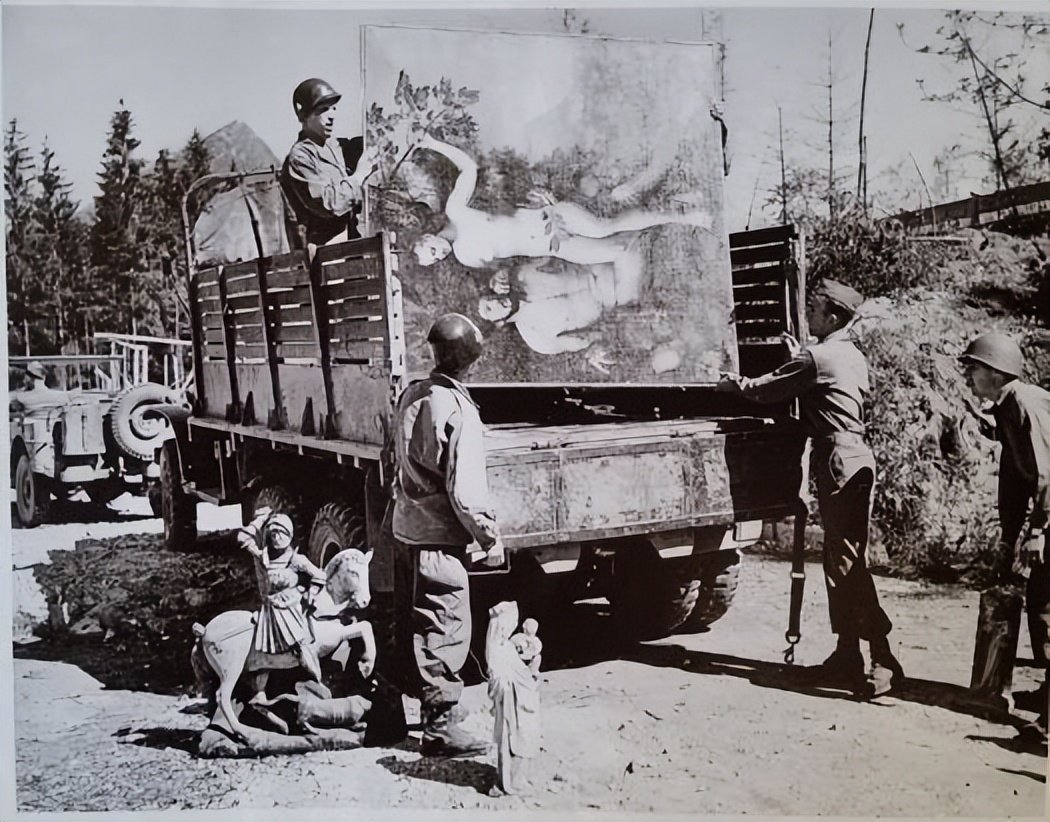 图为1945年5月,美军缴获戈林的藏品,用车装了整整一车。