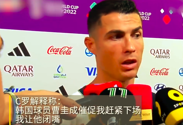 当然,不仅是韩国球迷,韩国队队员当时在场上也对C罗予以恶意嘲讽,并发生冲突。据悉,C罗在即将要被换下场的时候,韩国球员曹圭成示意C罗赶紧撤下去,这一举动引起了C罗与佩佩的不满,随后C罗示意对方闭嘴,并且比赛结束后C罗表示,曹圭成没资格发表意见。