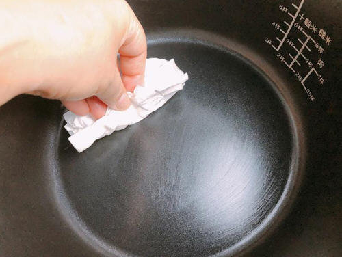 6、将内锅均匀涂抹一层薄薄的奶油。可用厨房纸巾或包奶油的纸抹匀。