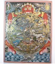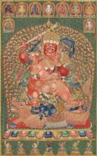 宗教类包括:曼荼罗画、本生、集树会、祖师像、生活传记、诸佛菩萨、本尊护法、空行、罗汉、生死轮回图、西方极乐世界等。