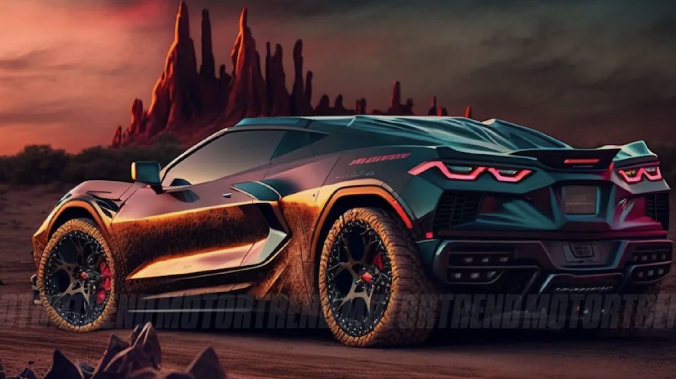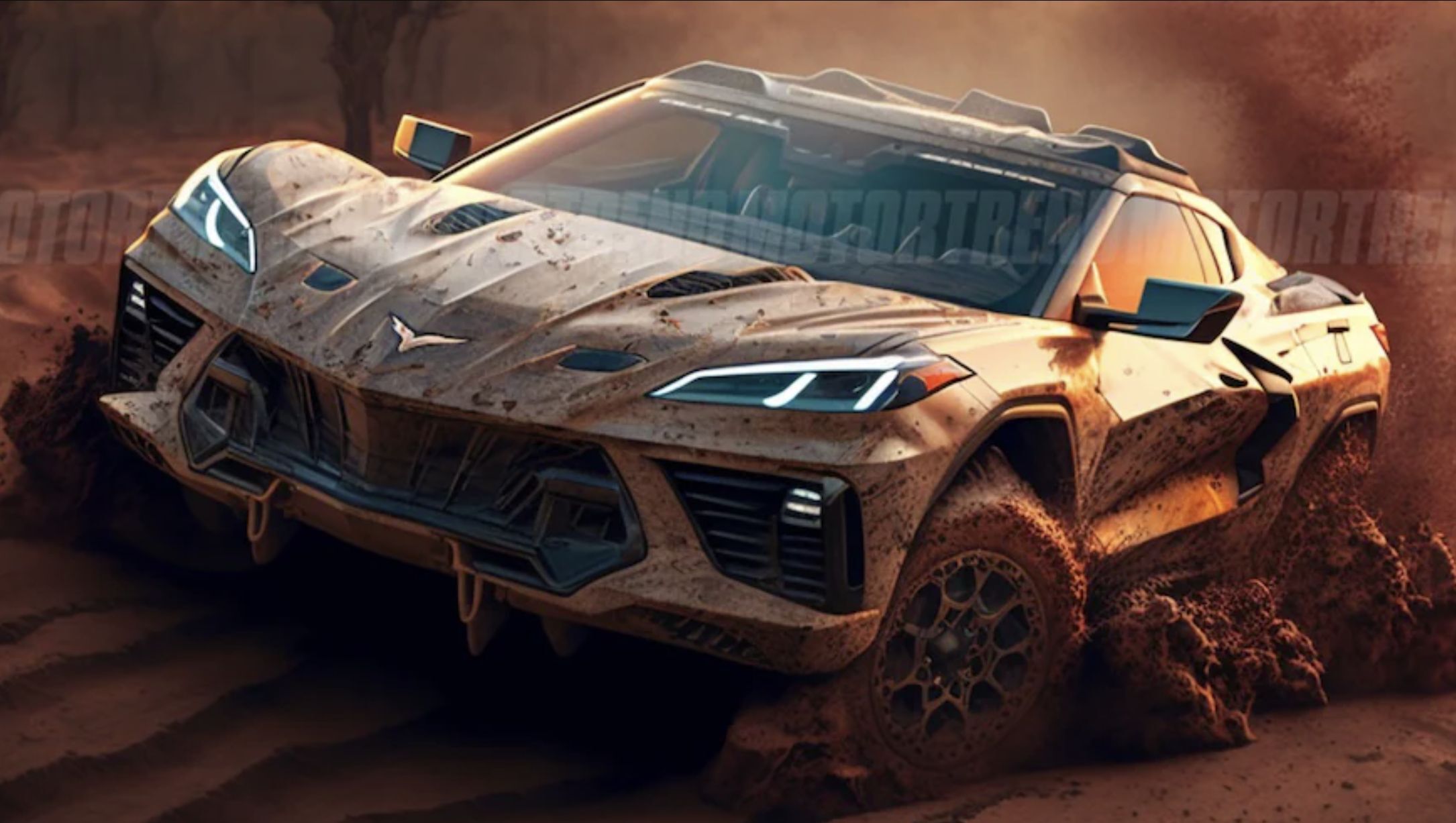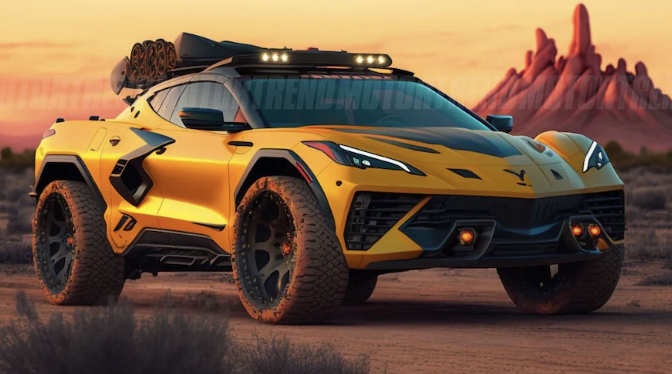 而克尔维特作为美系超跑的代表,自然是不能免俗,这些渲染图,也让人们对这种新式的改装形式,冲满了向往和憧憬,毕竟一台泛用性极佳的越野超跑,想想都让人兴奋。