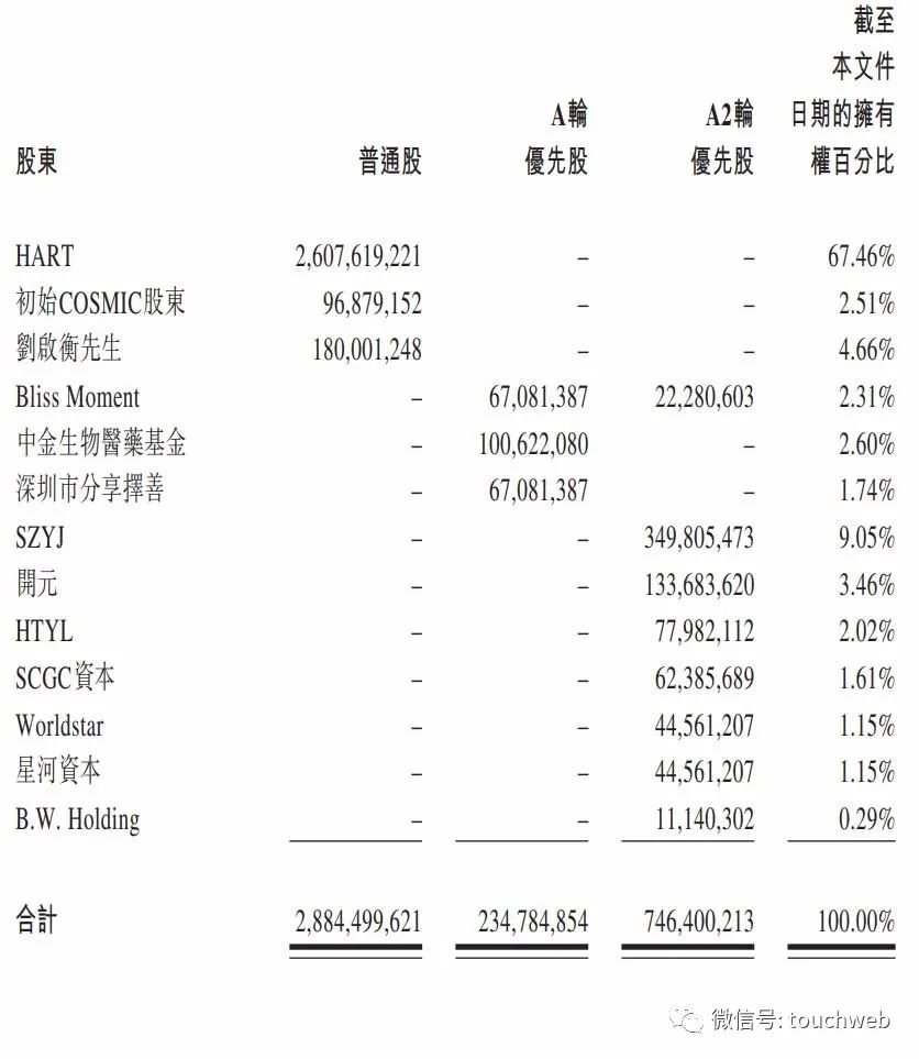 IPO前,HART持股为67.46%,刘启衡持股为4.66%,刘启衡为公司执行董事兼首席营运官刘桂祯女士的兄长。