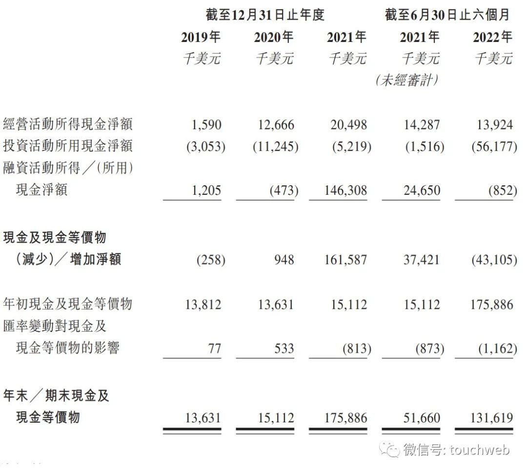 截至2022年6月30日,业聚医疗持有现金及现金等价物为1.32亿美元,上年同期的现金及现金等价物为5166万美元。