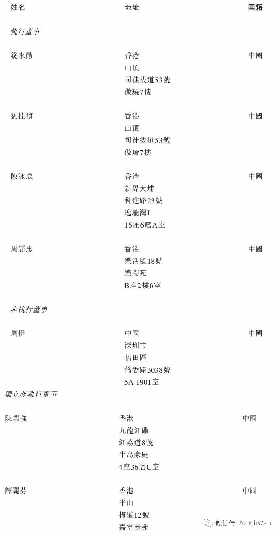 钱永勋为公司董事长、执行董事兼行政总裁,刘桂祯为公司执行董事兼首席营运官,钱永勋、刘桂祯为夫妻关系。
