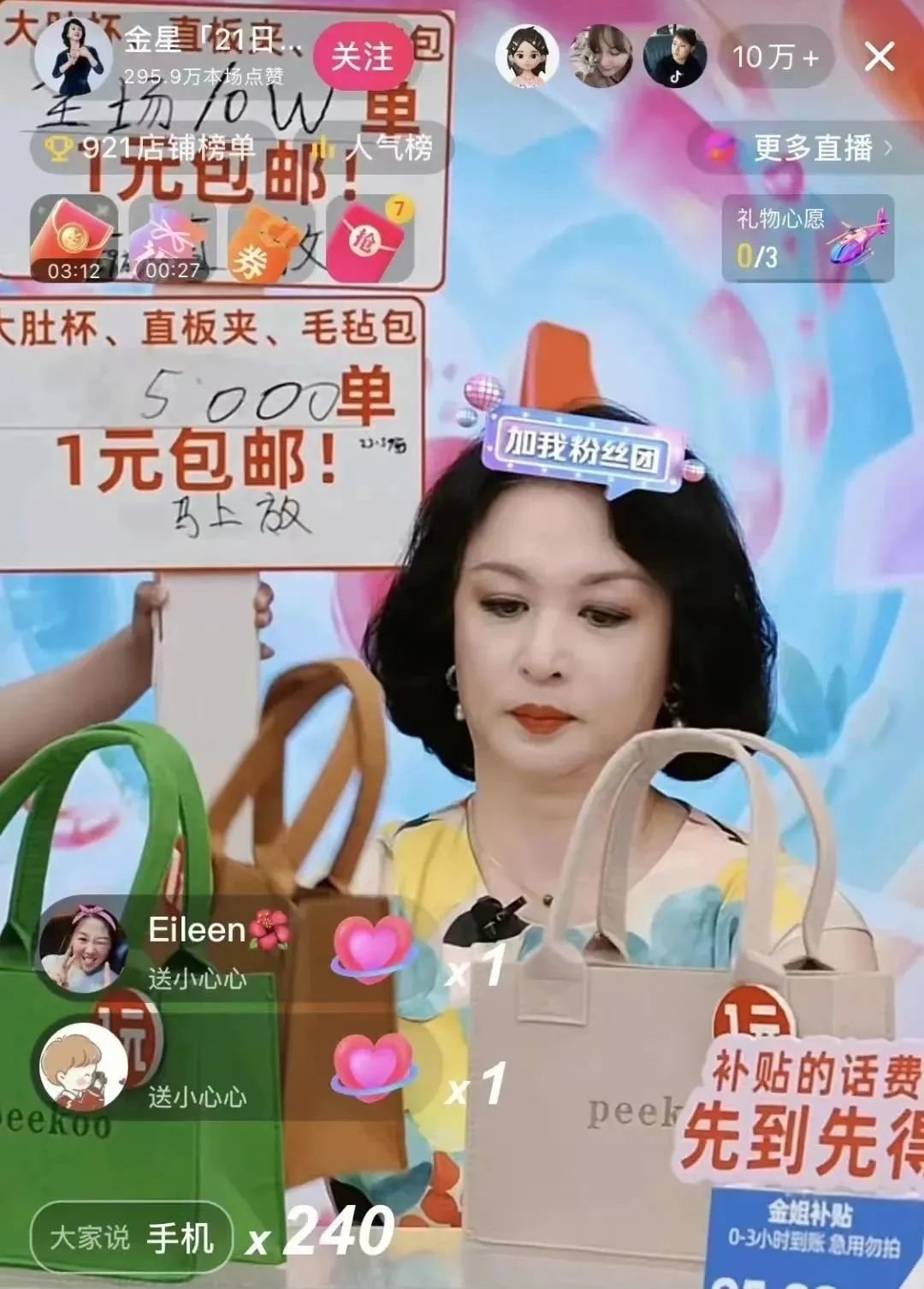 直播间里的金星一点不优雅,但她依然惹人爱。