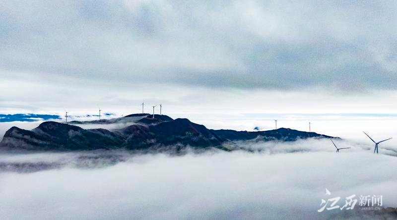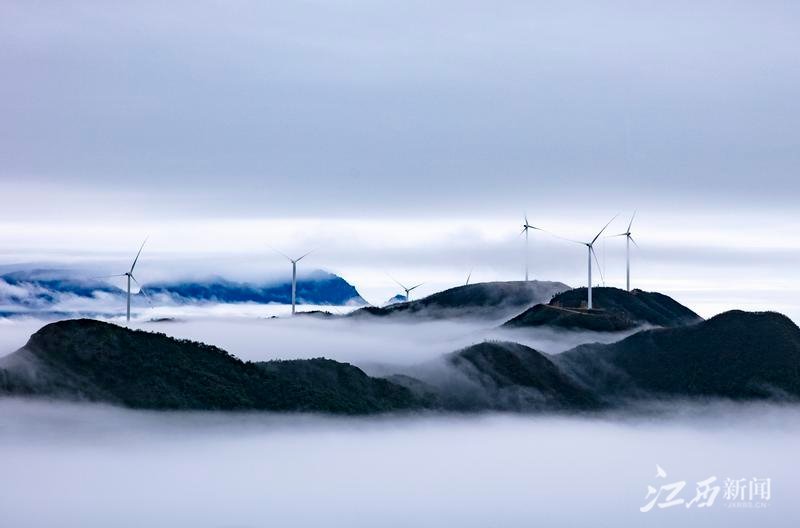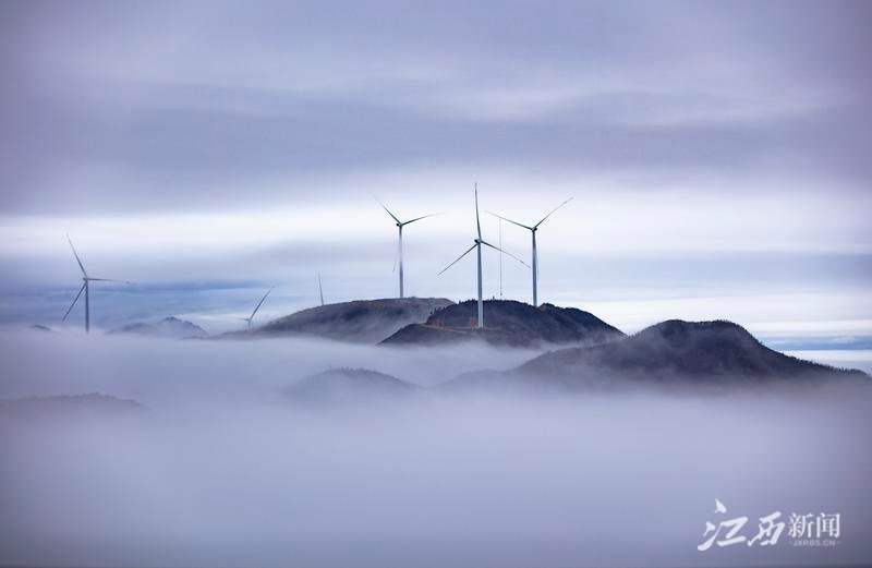 12月4日,横峰县麒麟峰云雾在山涧河谷间流淌,宛若仙境。当日,麒麟峰雨后初霁,逶迤的群峰在飘浮游荡的云雾中若隐若现,云雾与风车、山峰交相呼应,宛如一幅水墨山水画。通讯员 薛南摄