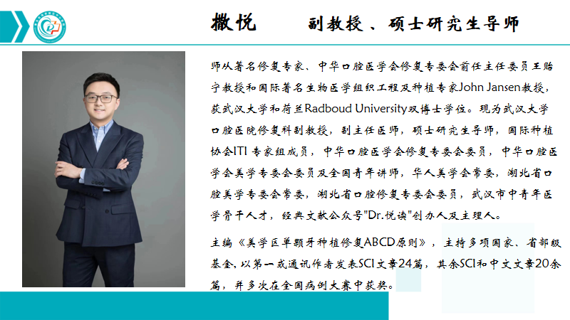 会议特邀武汉大学口腔修复科副主任医师、硕士研究生导师撒悦教授,为大家讲授无牙颌的种植质控要素。