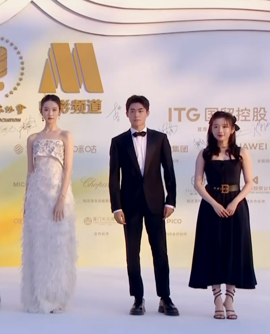 可是在金鸡奖红毯上,李浩菲却像小朋友乱入,尤其是跟她同场的是有着175cm身高的张艺凡(最左)。两人的同框对比太明显了,一个像女明星,一个像剧组制片人的女儿硬要蹭红毯。