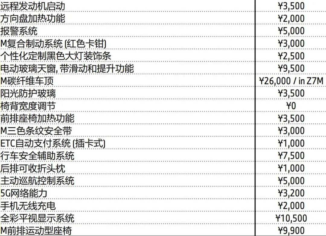 至于2500元的个性化定制大灯饰条、3000元的M三色纹安全带,就完全属于心情件了,或许某宝几百块钱就能搞定。