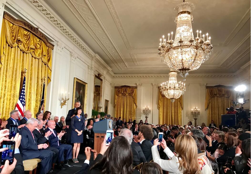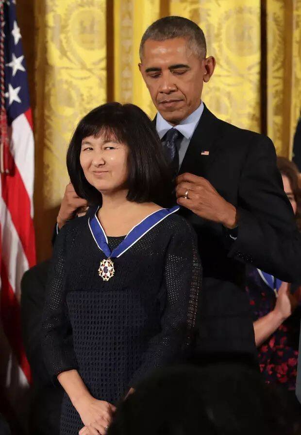 ▲2016年11月,林璎获得“总统自由勋章”,奥巴马总统亲自为林璎佩戴奖章