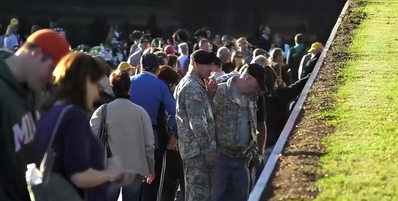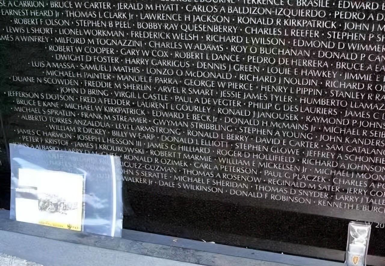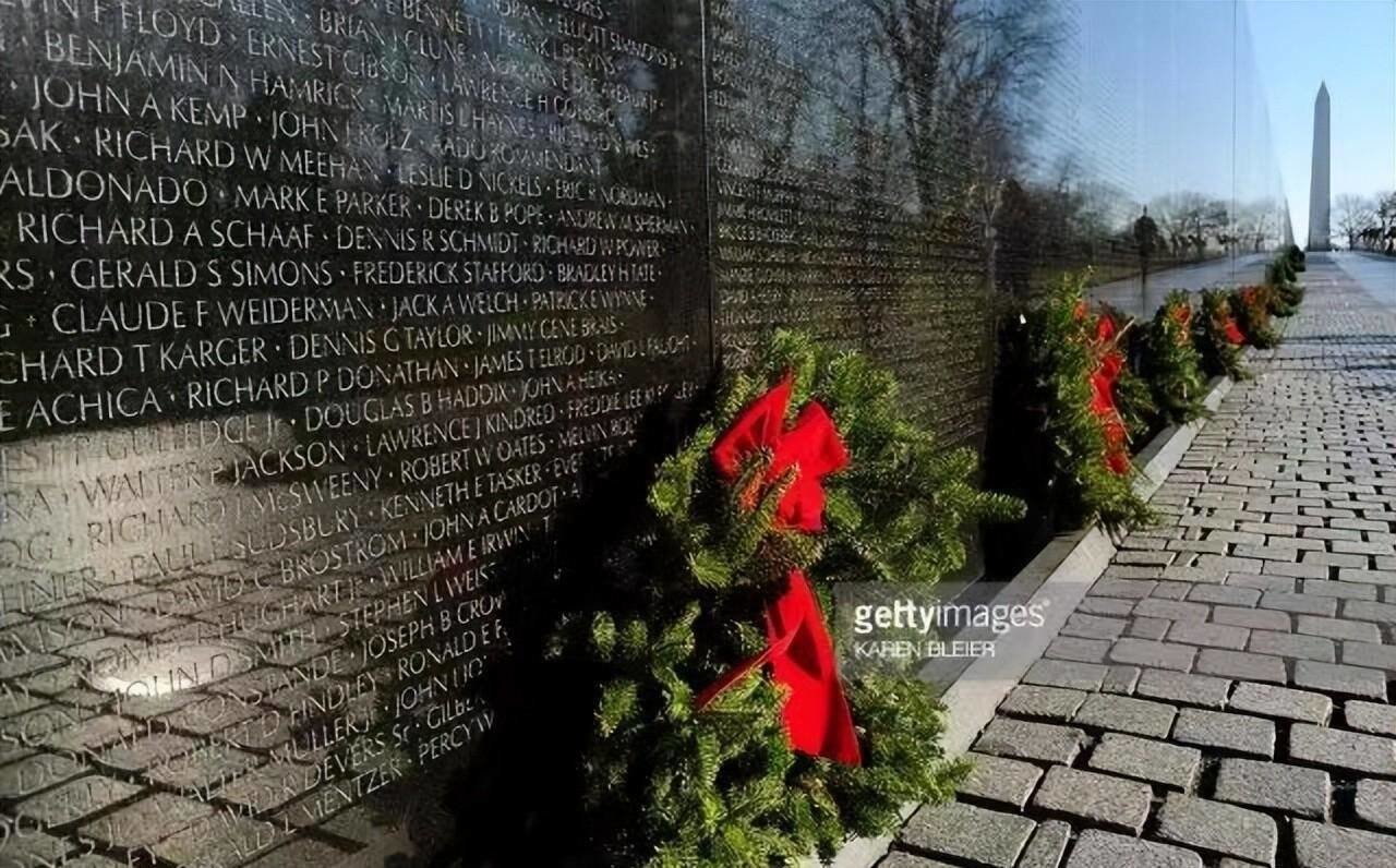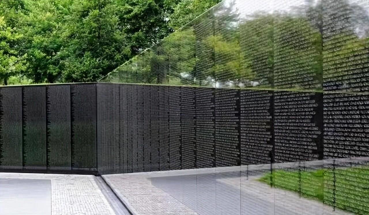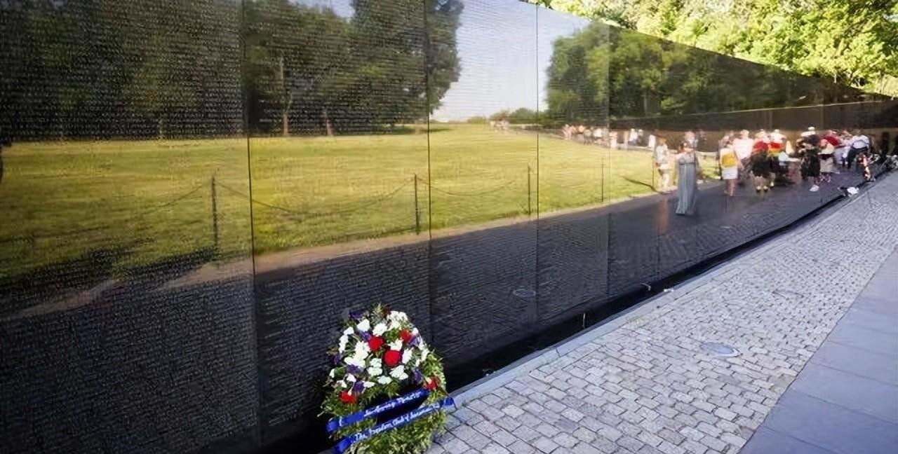 这座V字型纪念碑由黝黑抛光的花岗岩砌成,上面刻满了阵亡官兵姓名,人们来到纪念碑前,奉献鲜花和眼泪。