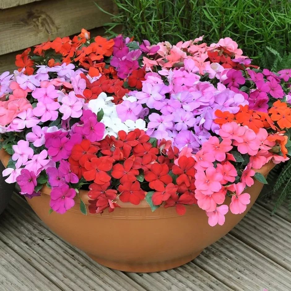 现在凤仙花的品种已经越来越多了,就比如,常见的几内亚凤仙花、五彩凤仙花、非洲凤仙花、苏丹凤仙花等品种,它们的花色就包括常见的粉色、红色、紫色、白色和混色的品种等。
