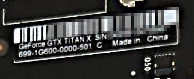 此外,这款 GTX TITAN X 的板号与上市的原版 TITAN X 相同。但是,产品代码略有不同,不是常规的 699-1G600-0000-500E,而是 699-1G600-0000-501C。