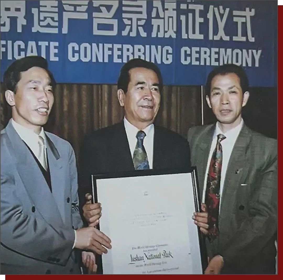 人大副委员长铁木尔 · 达瓦买提向庐山管理局领导颁发证书 图源:《庐山历史上的今天》
