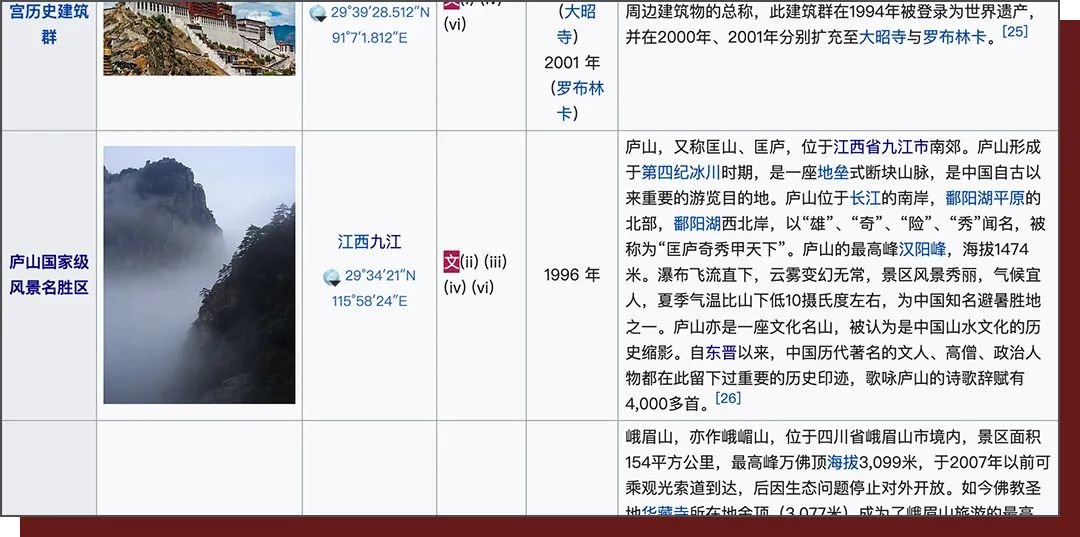 中国世界遗产列表 图源:维基百科